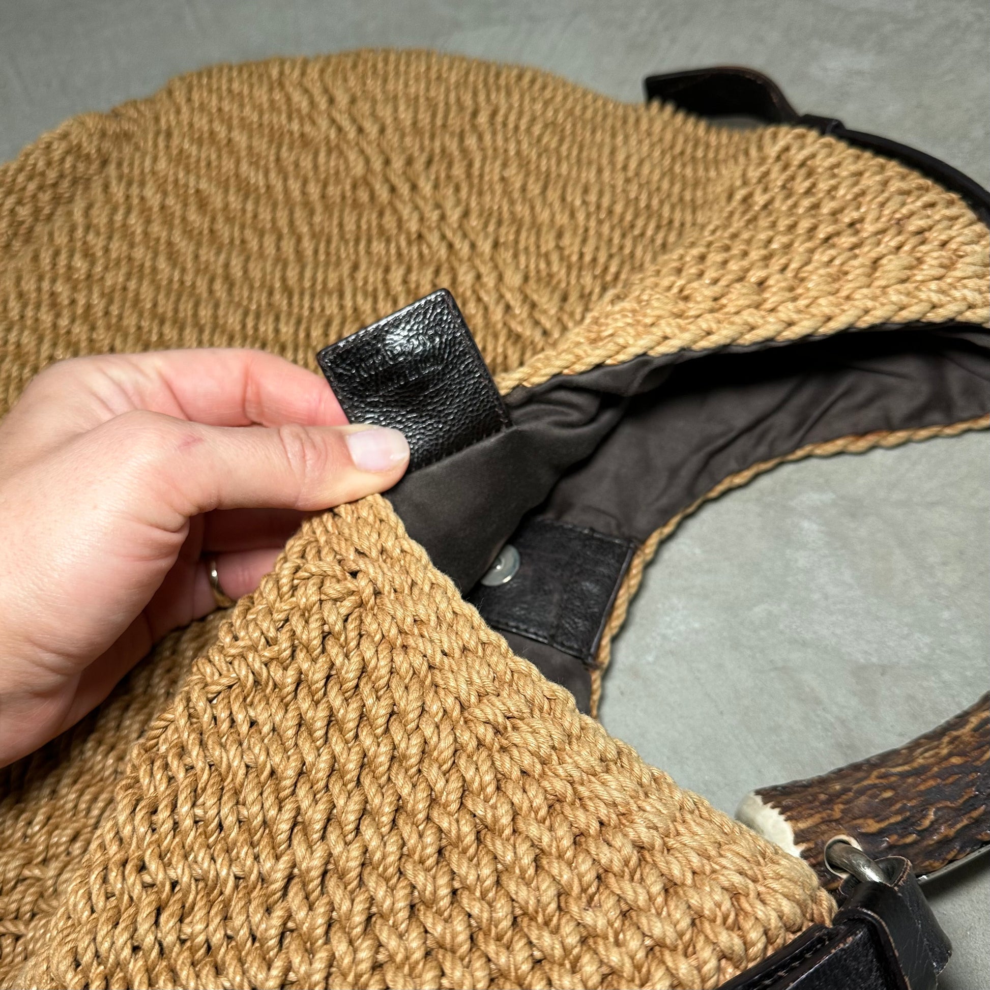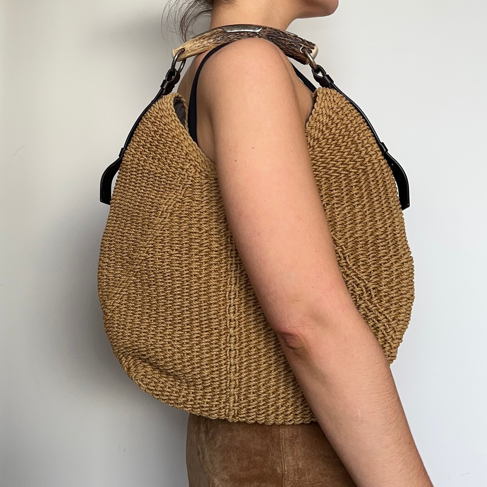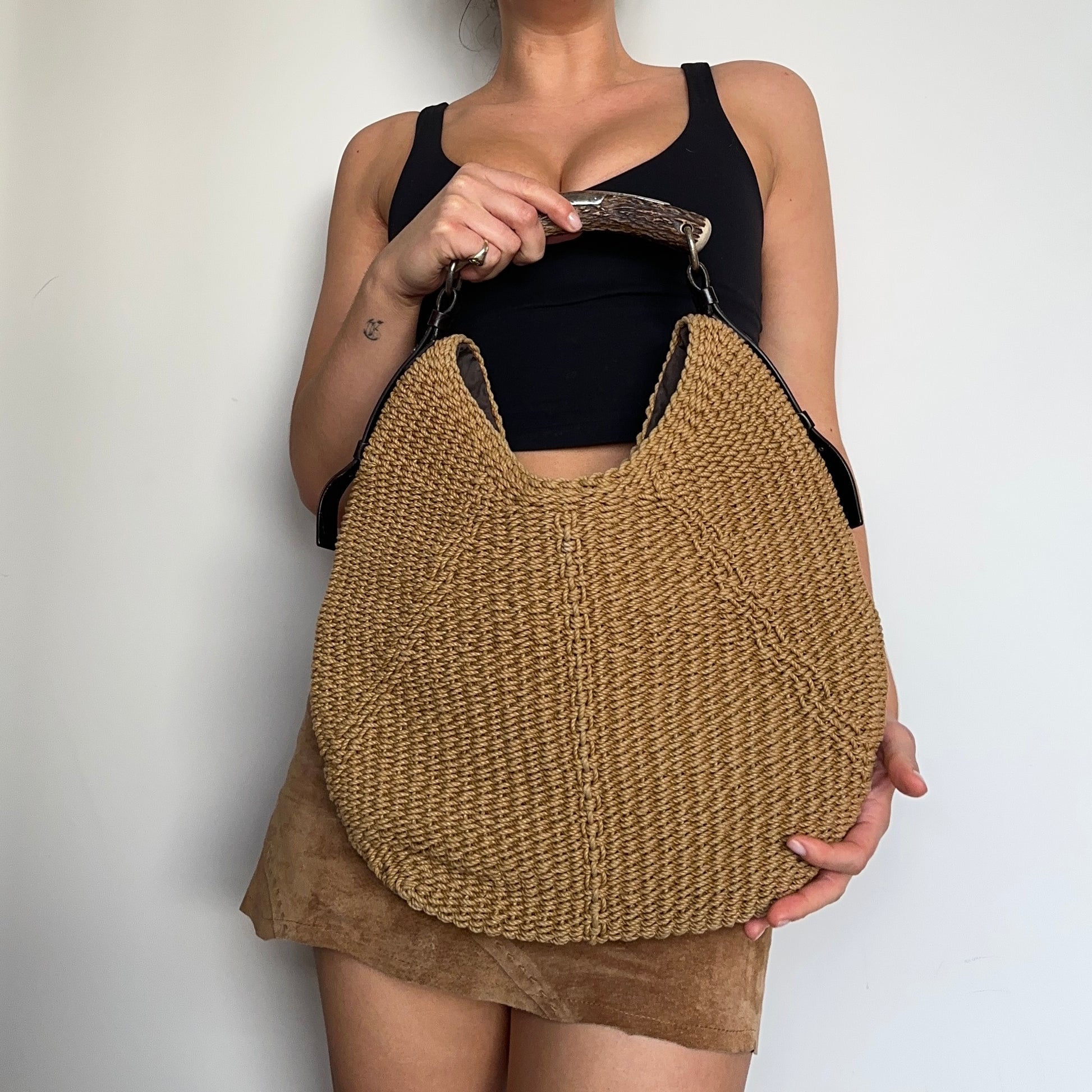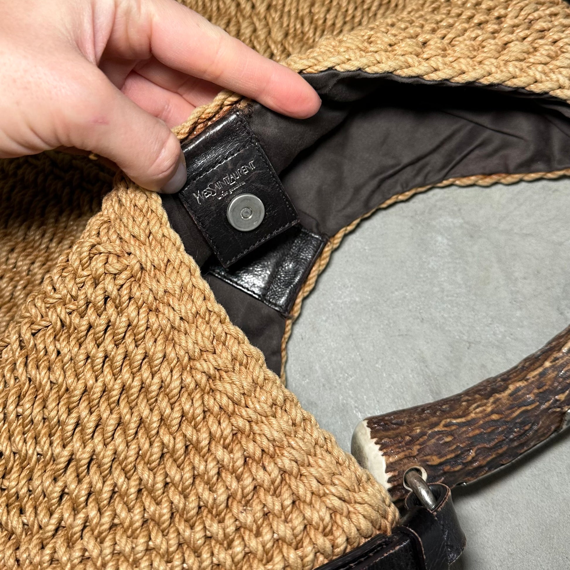 Gorgeous large woven effect YSL Mombasa. Thick, sturdy, and fully lined with leather accents.