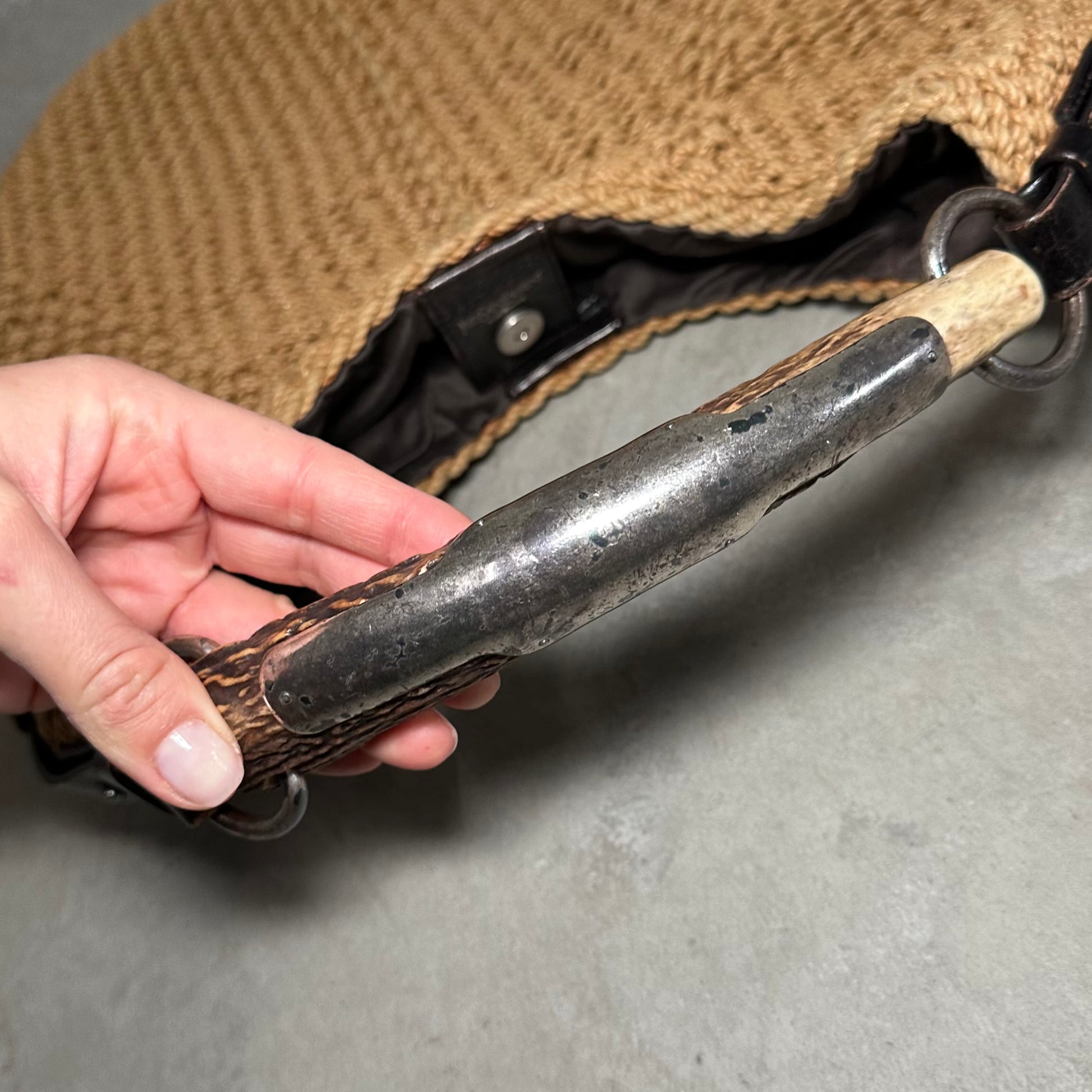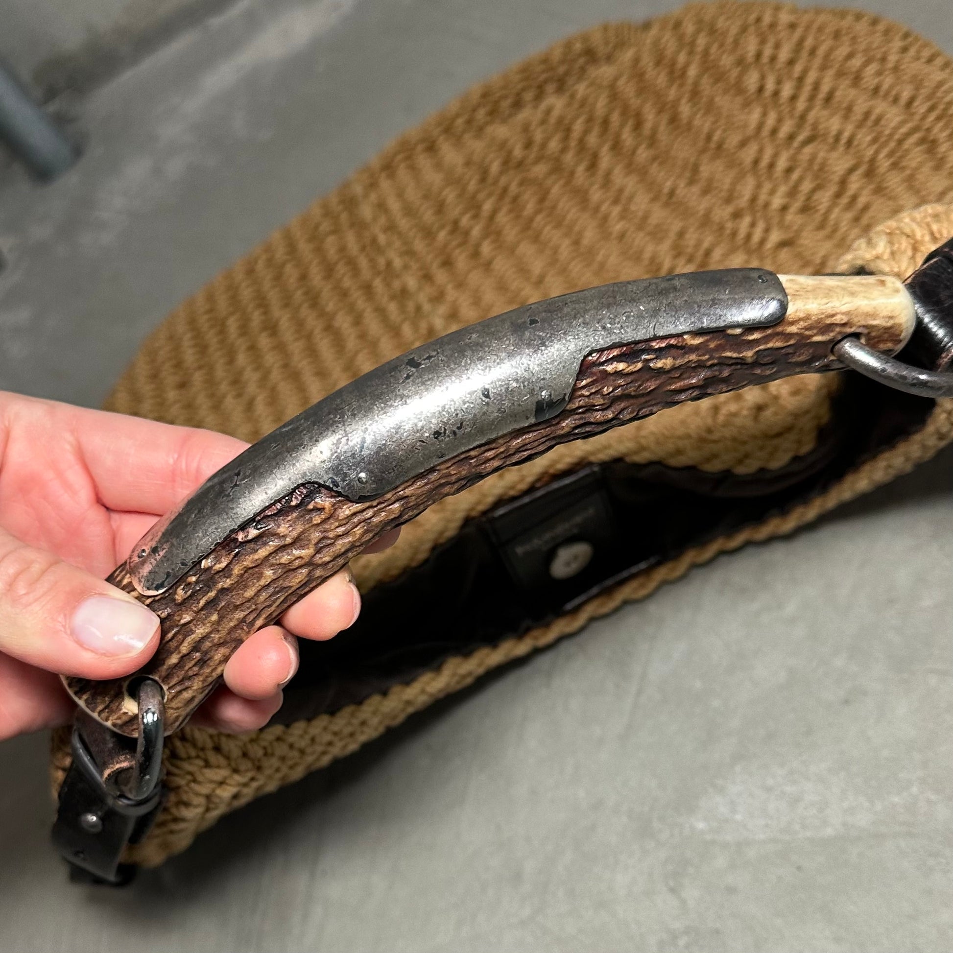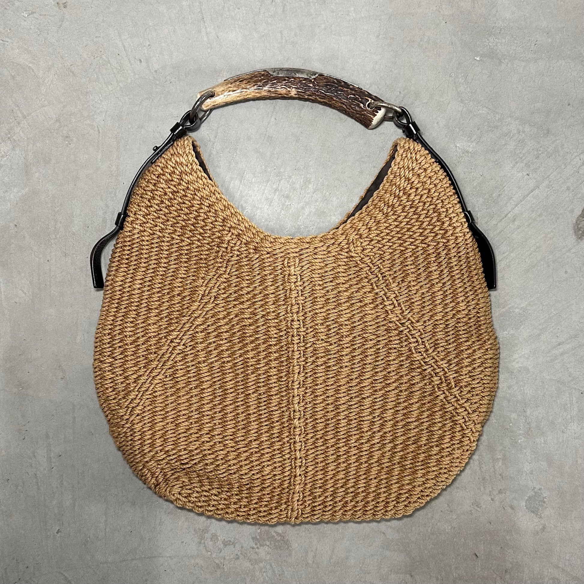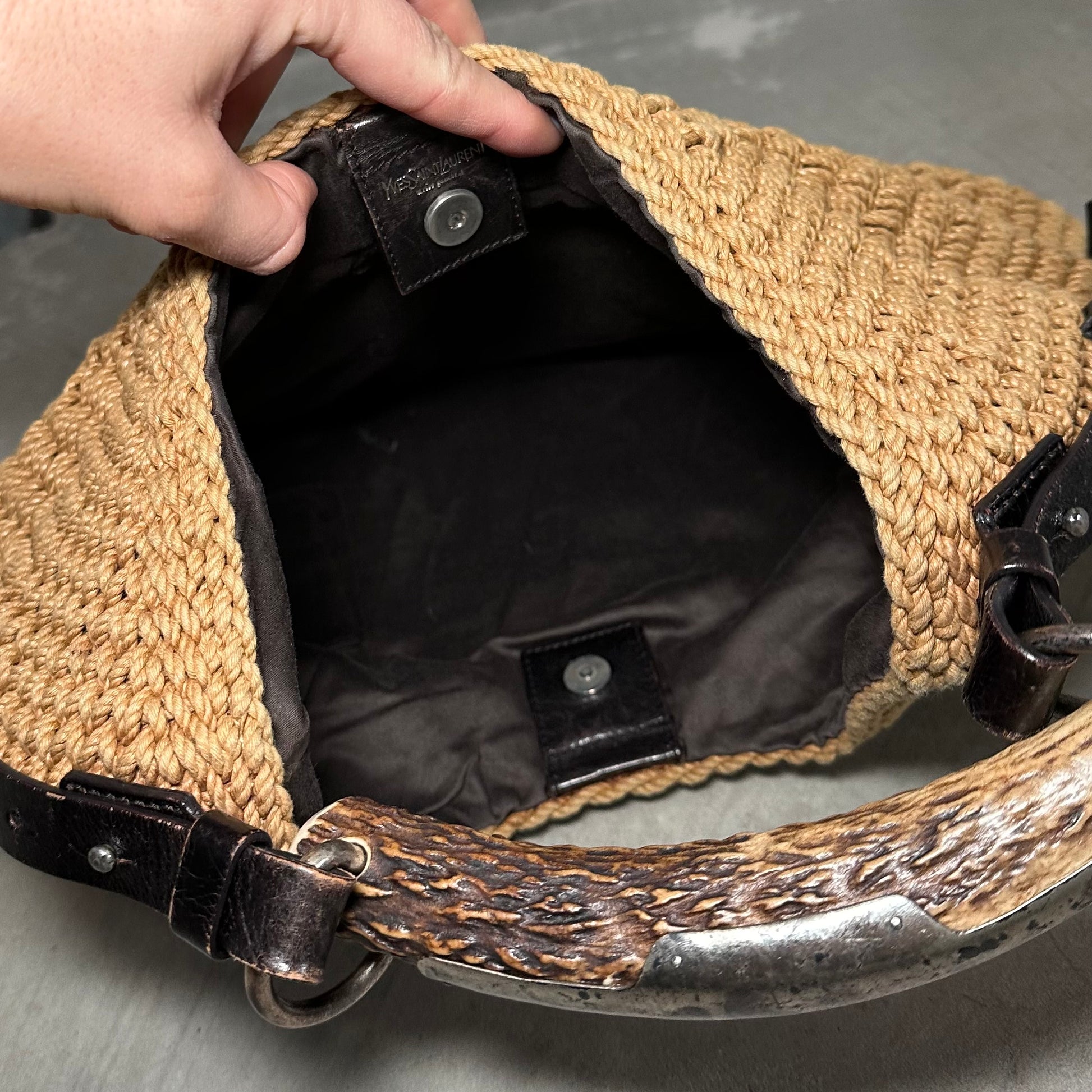 Gorgeous large woven effect YSL Mombasa. Thick, sturdy, and fully lined with leather accents.