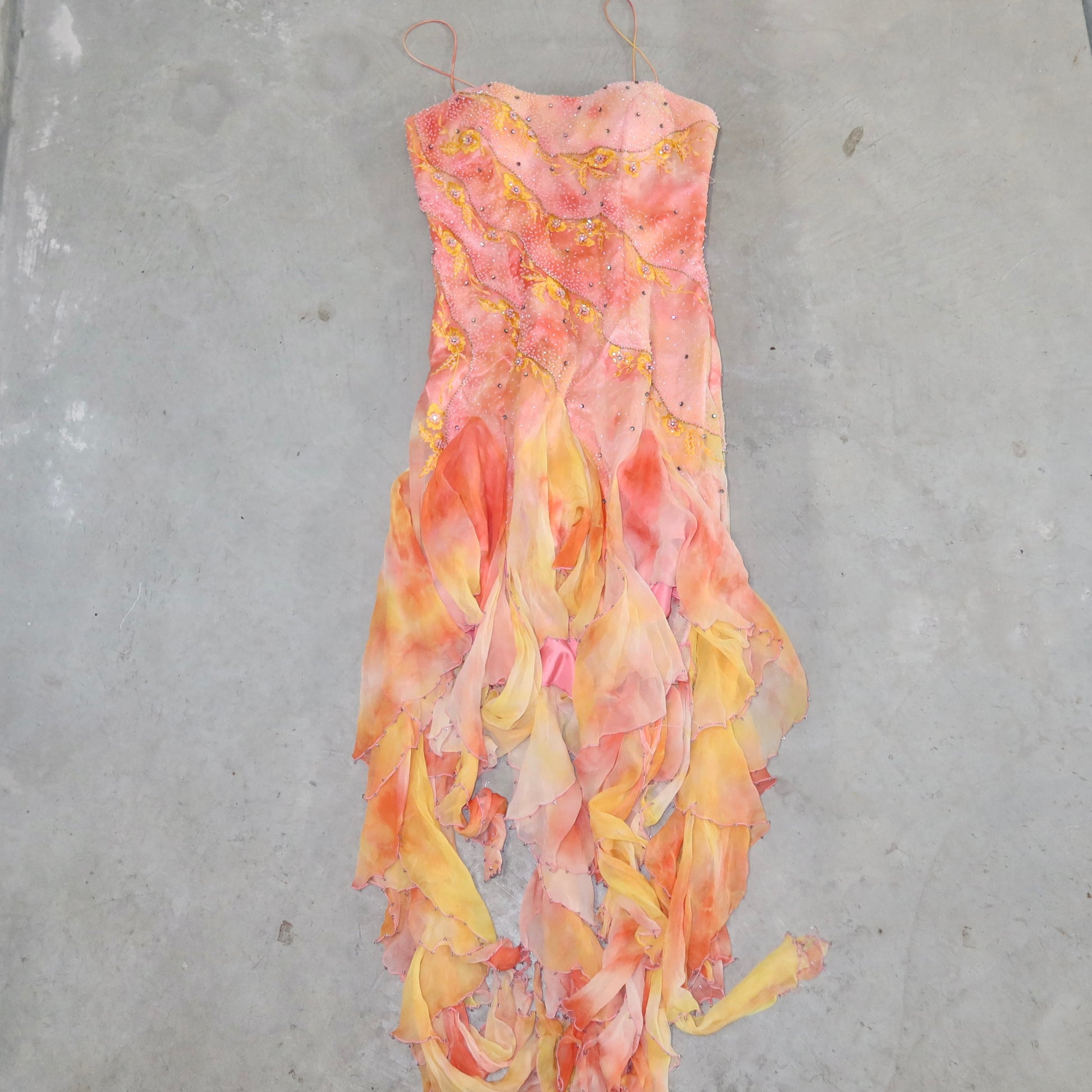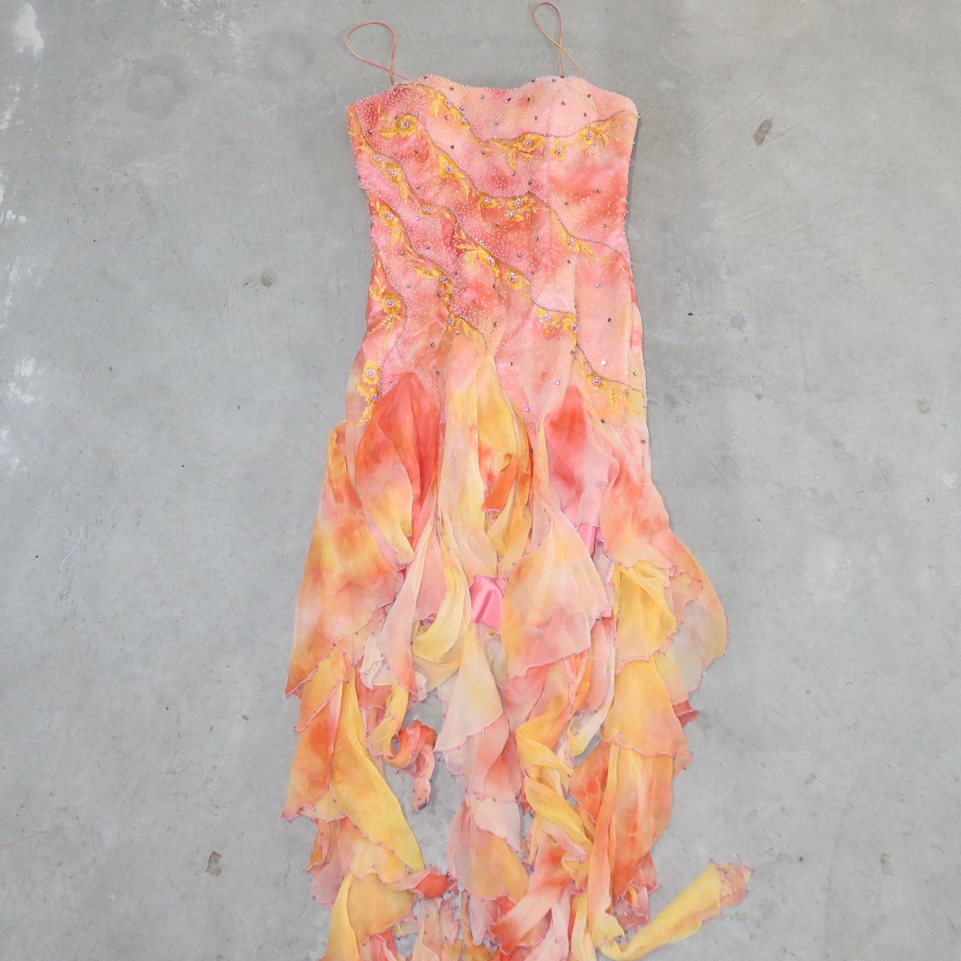 Insane YVE London beaded jellyfish hem dress with lace up back.