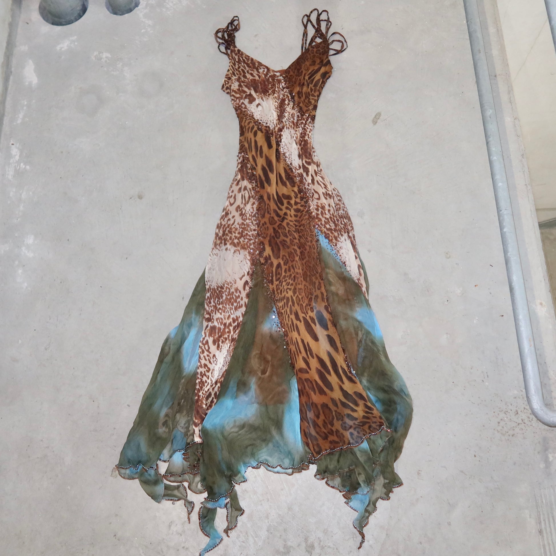 One of our rental archives, now available to buy! Stunning YVE London handkerchief hem dress in the most beautiful mixed leopard print with beaded accents. Sequin embellished shoulder straps. A truly stunning piece. Pictured on the gorgeous Jasmin Amma.